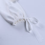 - Off-shoulder balloon sleeves.