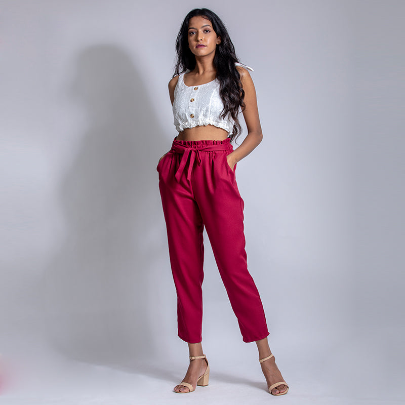 Sleeveless Crop top with hakoba work all over. Elasticated at the bottom.