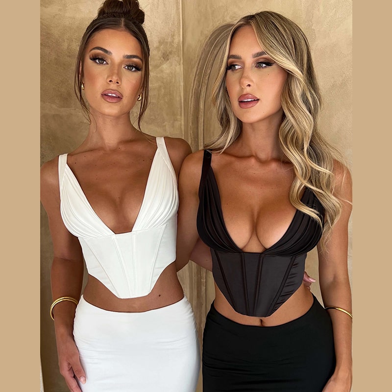 Turn the energy up with our feisty Deep Curved Hem Corset Top! The deep plunging V-neck accentuates your neckline with a daring allure and the flexible boning ensures a comfortable yet sculpted fit. The cropped hem makes it trendy, making this corset top a must-have for any fashionista.