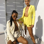 - This outfit is great for summer, as well as being a perfect choice for spring. The set can be styled both formally and casually; you can wear the blazer separately from the shorts to dress up your appearance or wear the blazer with other bottoms for an easy look.