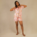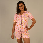 - Designed with bold dog prints, this set consists of a shirt which has a lapel collar, button placket with short sleeves and elasticated shorts.