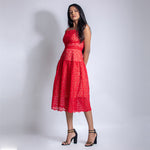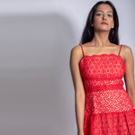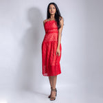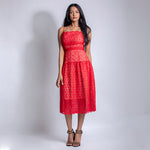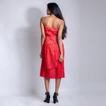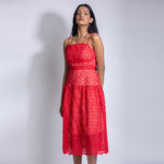 Spaghetti sleeved cut work midi dress with zip fastening from behind. This gives a perfect shape to your waistline. A perfect pick for a dinner date.