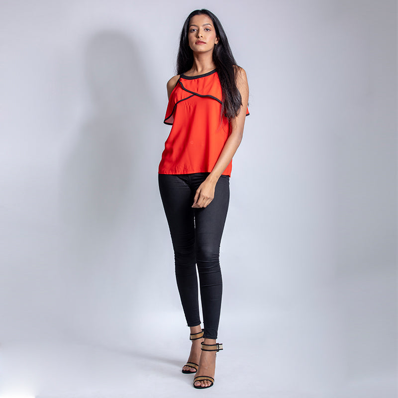 -Let your style bloom this season with this casual top with overlapping lining around the neck.