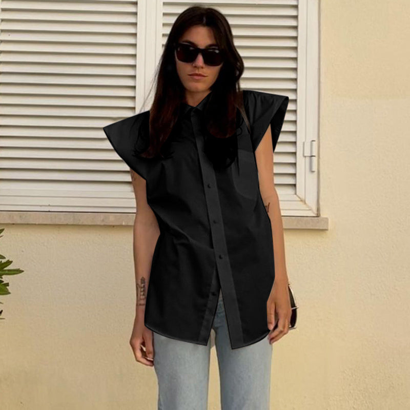 - Keep it casual and comfortable with this button-down shirt. The cap sleeve design is perfect for a laid back look with a twist of sophistication. The lightweight cotton and polyester blend fabric is great for spring, summer and fall seasons.