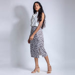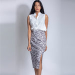 Sleeveless top with Chinese collar and cut work design. Best worn with denims and trousers or our own zebra skirt.