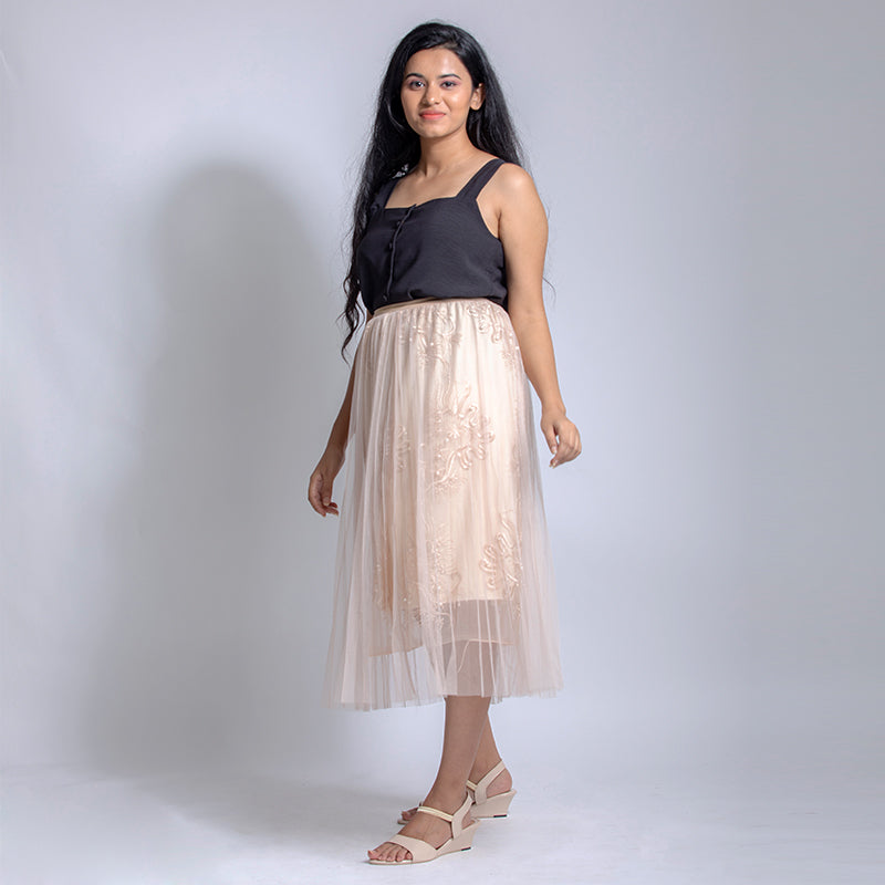 Sleeveless crop top with square neck and buttons fastening in front. Best paired with trousers and denims.