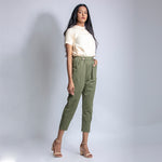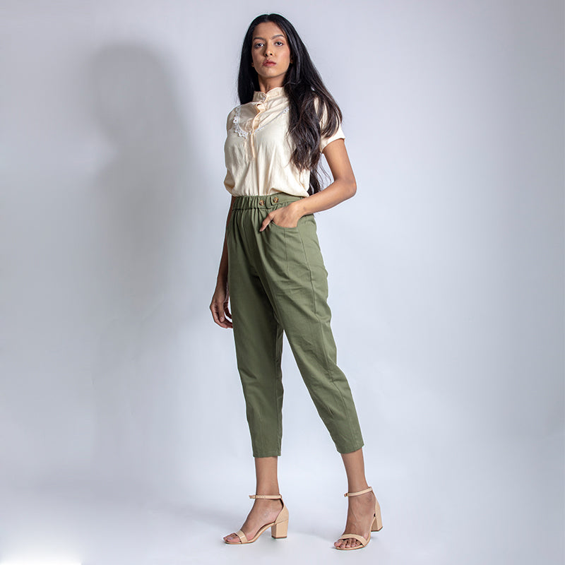 Then this Ankle Length Trouser from Color Theory with elasticated waist and buttons at the waist also featuring pockets in the front is the perfect trouser to go for.