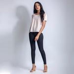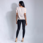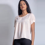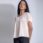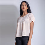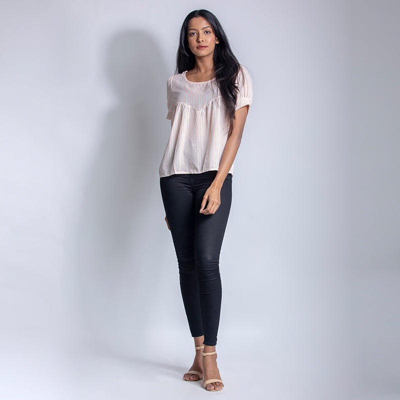 Plain check top with short sleeves and oval shaped neck. Best worn with denims.