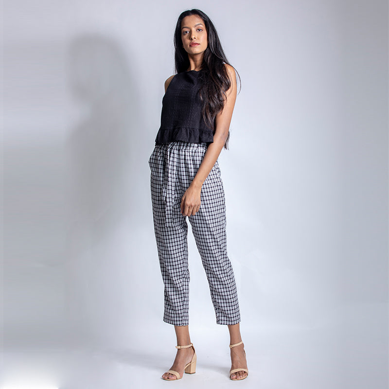 Ankle length pant with elasticated waist and tie up around the waist. Wear it with a patent heel and a cute top for a everyday look or dinner looks.
