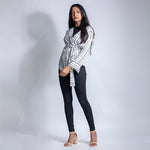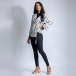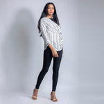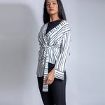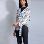 Full sleeve wrap top with stripe design. Tie up around the waist. Best worn with denims.